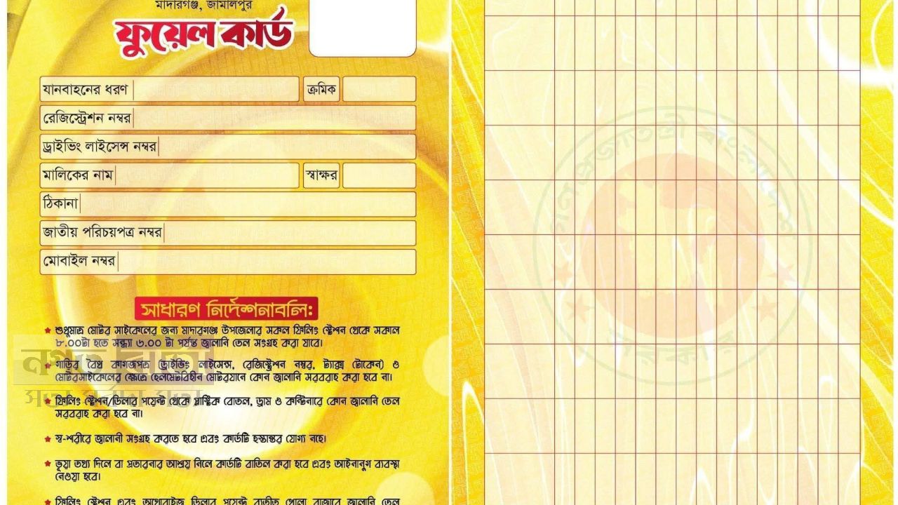 আগামী রবিবার ও সোমবার থেকে ফুয়েল কার্ড সকলের জন্য উন্মুক্ত করা হবে। নির্ধারিত এই সময়ের পর আর কোনো ফুয়েল কার্ড প্রদান করা হবে না।